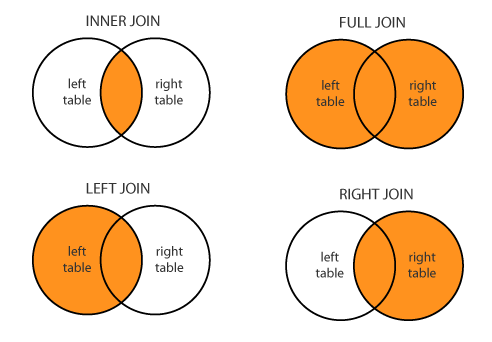 위와 같이 각 테이블별로 이름이 있고 수학점수와 영어점수가 따로 나뉘어져 있습니다. 그런데 각 테이블을 병합하여 한 번에 보고 싶을 수도 있겠죠? 이 때 join 방법을 쓰는데 몇 가지 종류가 있습니다.